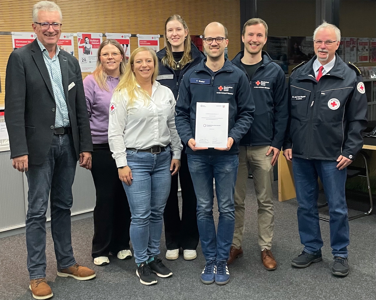 Text: Nina Heckmann Die ehrenamtliche Rotkreuzgemeinschaft Münster, Teil des DRK-Kreisverbands Münster, darf sich über eine besondere Anerkennung freuen: Ihr Mentoring-Projekt zur Gewinnung und Begleitung neuer Ehrenamtlicher ist für den Engagementpreis NRW 2025 nominiert worden. Unter dem Jahresmotto „Nachwuchs sichern und Zukunft gestalten – Talente fördern und Potenziale entfalten“ zählt es zu den landesweit zwölf ausgewählten Projekten, die als vorbildliche Beispiele gelungener Nachwuchsgewinnung ausgezeichnet werden. Am 24. November wurde das Projekt zudem als „Engagement des Monats November 2025“ geehrt. Die offizielle Urkundenverleihung erfolgte am Montagabend durch Dr. Rudolf Grothues, Regionalbotschafter der NRW-Stiftung, im Namen der Staatskanzlei Nordrhein-Westfalen und der NRW-Stiftung, im Beisein von DRK-Landesarzt Dr. Frank Marquard. Das Mentoring-Projekt der Rotkreuzgemeinschaft Münster unterstützt Menschen, die sich für ein Ehrenamt im Katastrophenschutz oder Sanitätsdienst interessieren, beim Einstieg in die Organisation. Neue Engagierte werden von erfahrenen Mentorinnen und Mentoren empfangen, schrittweise in die Gemeinschaft integriert und kontinuierlich begleitet. Durch dieses strukturierte Onboarding konnten in den vergangenen Jahren zahlreiche neue Mitglieder gewonnen und langfristig gebunden werden. Der Engagementpreis NRW wird jährlich von der Staatskanzlei Nordrhein-Westfalen und der NRW-Stiftung Naturschutz, Heimat- und Kulturpflege verliehen. Er würdigt herausragende ehrenamtliche Projekte und macht deren Bedeutung für das gesellschaftliche Miteinander sichtbar. Jeden Monat wird ein Projekt aus Nordrhein-Westfalen vorgestellt, aus denen schließlich zwölf Nominierte hervorgehen. Aus diesen zwölf Projekten werden vier Preisträgerinnen und Preisträger ermittelt – durch eine Online-Abstimmung, einen Sonderpreis der NRW-Stiftung, einen Sonderpreis des Ministeriums für Schule und Bildung sowie die Entscheidung einer Jury. Die Bekanntgabe der vier Preisträger*innen erfolgt am 15. Dezember 2025. Weitere Informationen zum Mentoring-Projekt der Rotkreuzgemeinschaft unter: www.engagiert-in-nrw.de/mentorenprogramm-rotkreuzgemeinschaft-muenster Foto: Nina Heckmann BU: v.l.: Dr. Rudolf Grothues, Lea Hoffmann, Nikola Volk, Louisa Hönes, Thomas Walter, Marco Dröge, Dr. Frank Marquard Beitrags-Navigation NRW-Stiftung unterstützt Webserie im LWL-Naturkundemuseum Münster